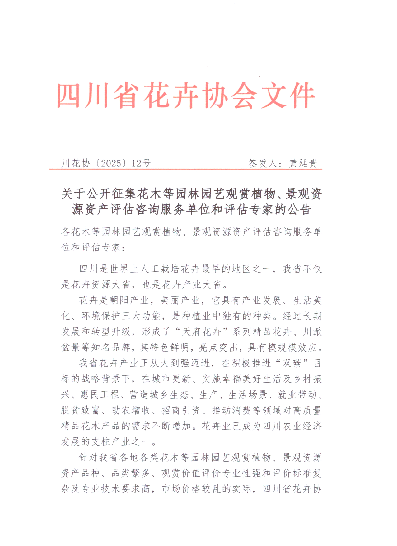 关于公开征集花木等园林园艺观赏植物、景观资源资产评估咨询服务单位和评估专家的公告...