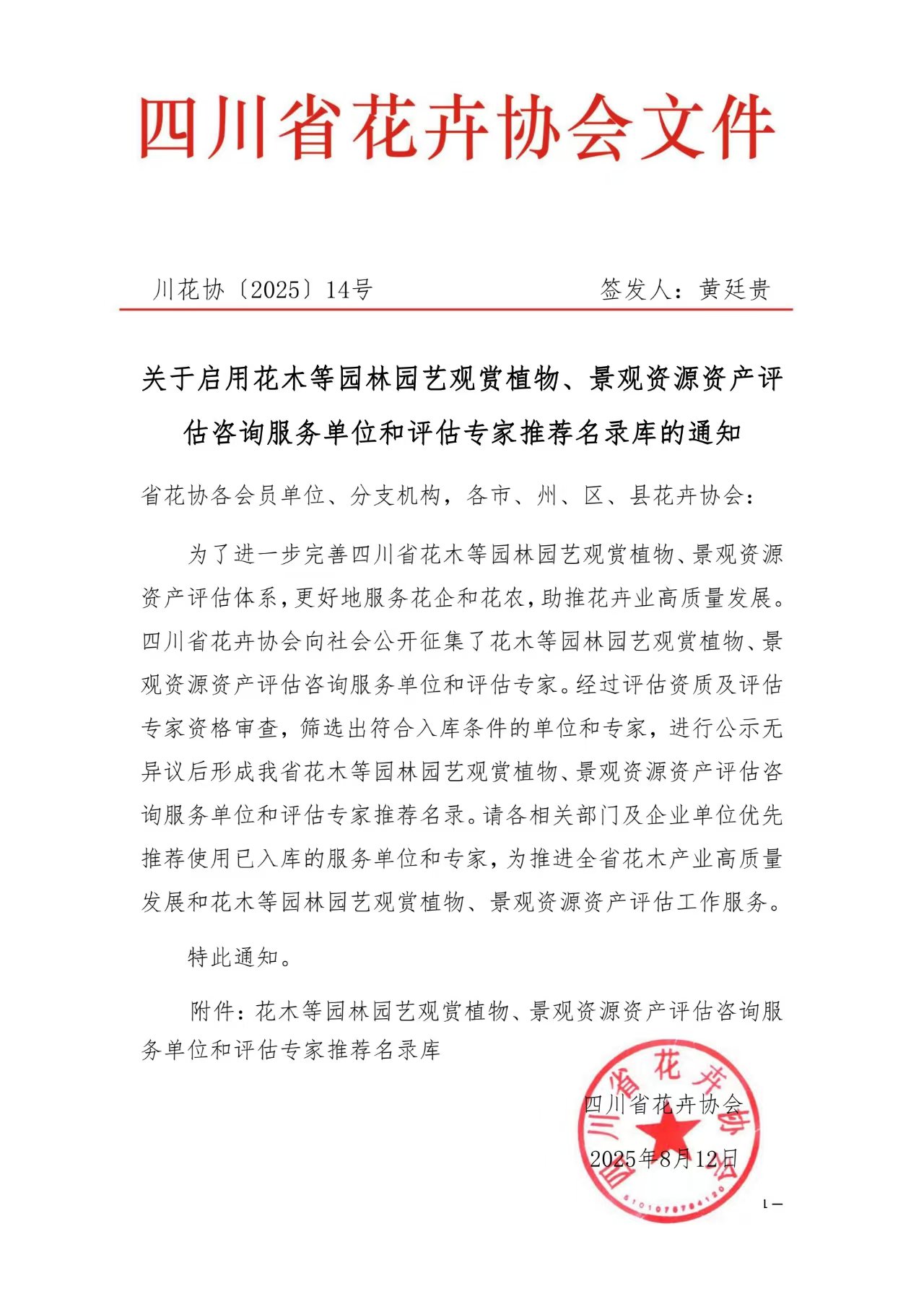 关于启用花木等园林园艺观赏植物、景观资源资产评估咨询服务单位和评估专家推荐名录库的通知..